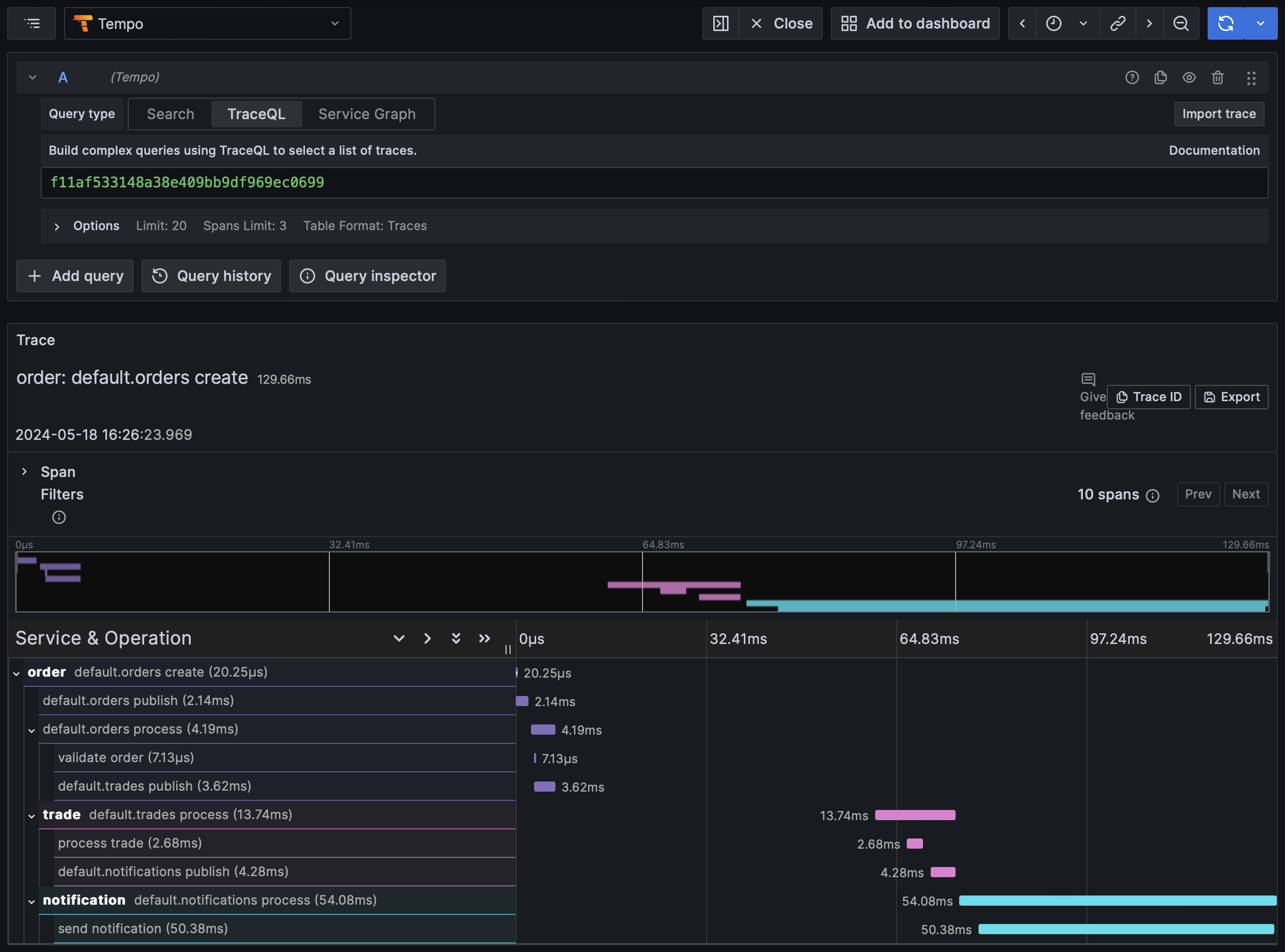 To see how to set up, visualize, and configure tracing for FastStream services, checkout the example project.